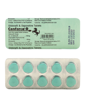 - Die übliche Dosis von Cenforce D beträgt 100 mg Sildenafil und 60 mg Dapoxetin pro Tablette.